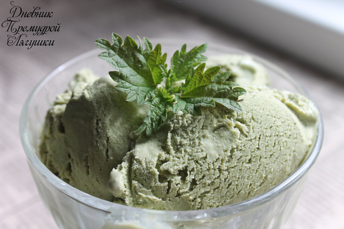 Майского гостя удивить легко! Надо предложить ему на десерт мороженку из ...крапивы!))) Которое к тому же имеет интересный эффект! Приветствую путника, чудом зашедшего на мою страницу! Если в мае месяце, в вашем доме собрались гости, дабы отведать шашлыка, баньки, и напитков для взрослых, то десертом удивить таких гостей не просто. Однако..., я точно знаю, что можно! Даже брутального вида мужчины не откажутся! Ибо...интересно же! Мороженое бодрит и освежает, и после него становится гораздо лучше на душе и в организме, особенно это касается мужчин, накануне употреблявших разнообразные напитки для взрослых. Конечно, это не панацея..., но всё же, после крапивного мороженого, да с утра, очень, очень хорошо! Дамам, детям, и сторонникам здорового образа жизни крапивное мороженое также рекомендуется! Мороженое вышло приятного фисташкового цвета, на вкус мятно-травяное, и поверьте, любители такого десерта обязательно найдутся! В сливочную основу я добавила сок крапивы и кондитерский экстракт м