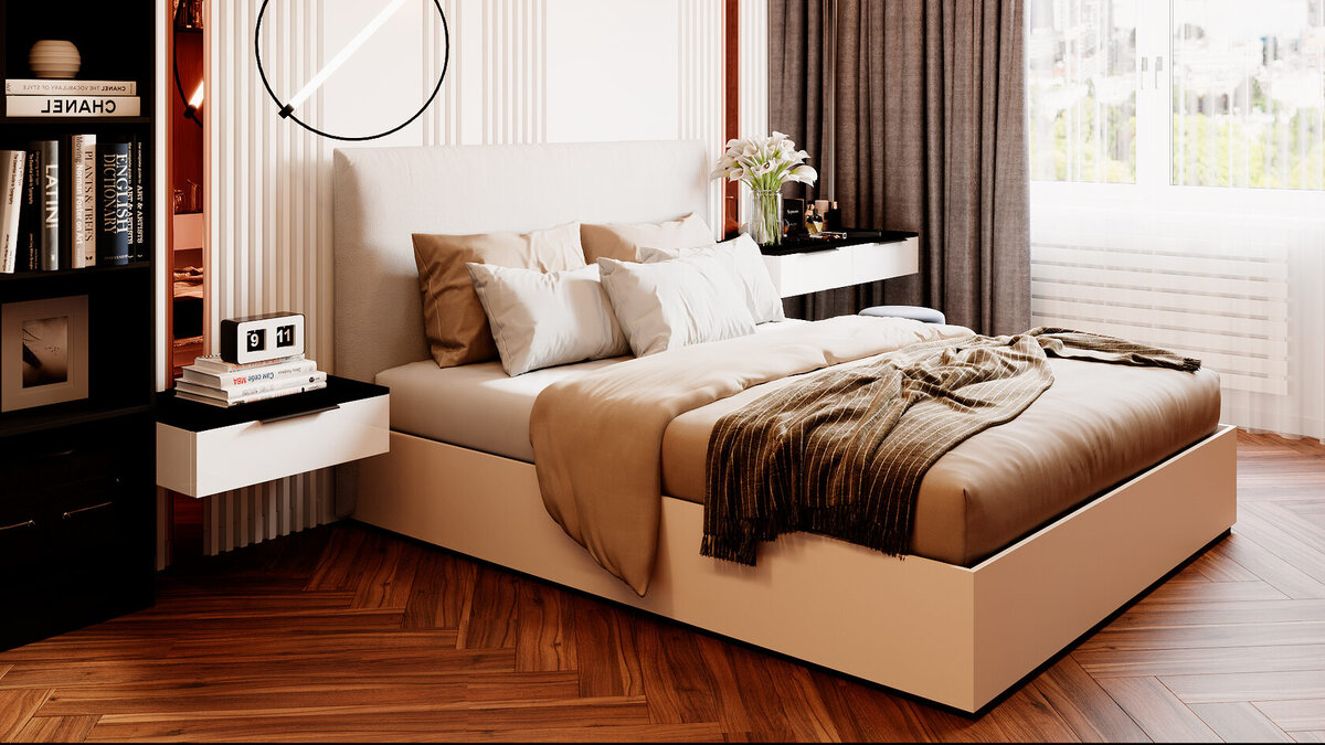 Прикроватные тумбы играют важную роль и порою достаточно хотя бы одной тумбы чтобы установить светильник, разместить книги, гигиенические средства, а также мобильные устройства. С другой стороны кровати мы всегда рекомендуем установить туалетный столик потому что у этой мебели попросту нет минусов. Вы можете, в том числе и работать за этим столом, если возникнет такая необходимость.