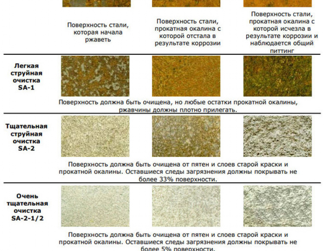 ПЕСКОСТРУЙНАЯ ОБРАБОТКА — ГРАДАЦИЯ ПО СТЕПЕНИ ОЧИСТКИ