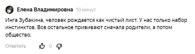 Наука считает, что личность на 40% состоит из врождённых вещей и на 60% из приобретённых.