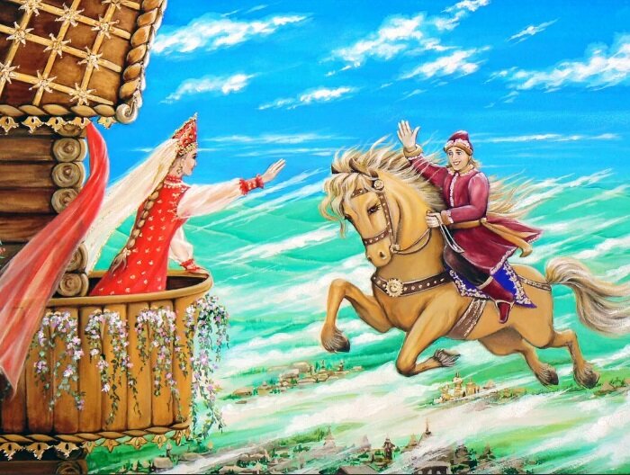 В сказке "Сивка-Бурка" мы видим тех же главных героев, которым посвящено большинство русских народных сказок. Мне даже посчастливилось найти иллюстрацию к этой сказке, где цвет одеяний героев соответствует заповеданному предками. Такие же цвета использовались и автором сказочной повести "Удивительный волшебник из страны Оз" Лайменом Фрэнком Баумом при рассказе о любви великой принцессы к прекрасному юноше. Как мы знаем, всего три цвета - красный, жёлтый и синий - необходимо заправить в принтер компьютера, чтобы получить на бумаге рисунки со множеством цветов и оттенков. Если же применить цвета к описанию функционала частей микрокосма человека, то из исходных трёх цветов нужно составить семь, смешивая их определённым образом. Красный цвет символизирует физическую материю, "камень". Жёлтый цвет символизирует витальность - жизненность, эмоциональность, животную природу. Синий - это цвет разумности, которая отличает человека от животного. А вот фиолетовый цвет является смешением синего и к