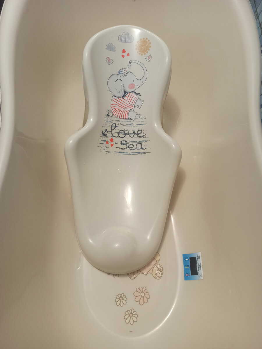 Одним из самых важных вопросов является купание малыша, все родители бояться это делать, так как все думают какая нужна вода? Какой температуры? В чем купать? Говоря честно мы тоже боялись делать первый шаг, но рано или поздно сделать его придется. Купать малыша нужно за 30 минут до еды или через 30 минут после еды. Так что же нужно подготовить для купания малыша: Говорю сразу младенцев рекомендуют купать с первых дней жизни каждый день, но голову мыть 2 раза в неделю. Так как у нас ванночка с горкой буду рассказывать о ней, гамак тоже хорош, но его не рекомендуют так как возможны в дальнейшем проблемы у малыша со спиной. Для начала наберите ванночку водой так, чтоб там было воды буквально столько, чтоб покрывала ступни малыша лежащего на горке. Набрав воду проверьте термометром температуру воды, она должна быть t=36-37° и не менее и не более. У нас в ванночке установлен сразу термометр с ним легче. Набрав воду кидаем в нее пакетики с чередой. Малыша кладём на простынку и вместе с ней