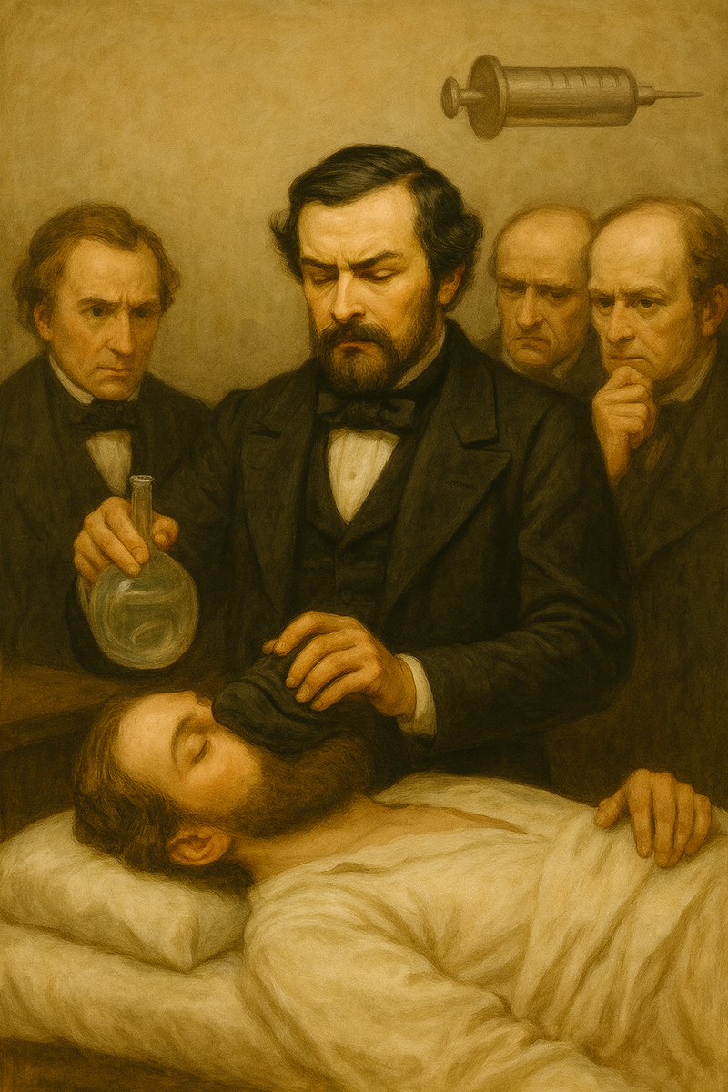 Первым хирургом, применившим эфирный наркоз, стал американский дантист Хорас Уэллс, решив продемонстрировать методику анестезии перед практикующими хирургами Бостонского медицинского сообщества, проведя публичную операцию по удалению зуба. Однако выступление было провалено – в самый ответственный момент пациент закричал. Позже оказалось, что закричал он не от боли, а от страха. Однако эффект был смазан, медицинское общество не поверило Хорасу Уэллсу.