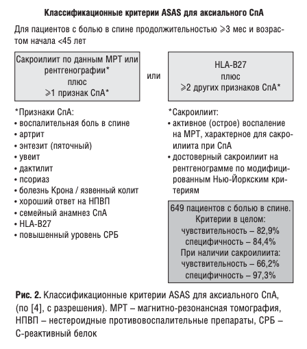Частый вопрос пациентов:« Мне поставили диагноз спондилоартрит , что это за заболевание?» Спондилоартриты это группа воспалительных заболеваний, которые поражают позвоночник, периферические суставы, связки и сухожилия. Объединены они т.к имеют общие клинические проявления , рентгенологические и генетические особенности. Эта группа заболеваний делится на 2 основных типа : А)Анкилозирующий спондилоартрит ( Болезнь Бехтерева) -есть рентгенологические изменения (двусторонний сакроилеит второй стадии и выше или односторонний третьей стадии и выше по Келлгрену) Б) Нерентгенологический аксиальный спондилоартрит - когда на рентгенограмме илеосакральных сочленений нет достоверных изменений и нет изменений в позвоночнике( синдесмофиты) , но есть сакроилеит по данным МРТ 2. Периферический -симптомы затрагивают преимущественно периферические суставы А) Псориатический артрит/спондилит Б) Реактивный артрит В)Спондилоартрит на фоне воспалительных заболеваний кишечника (Болезнь Крона , Язв