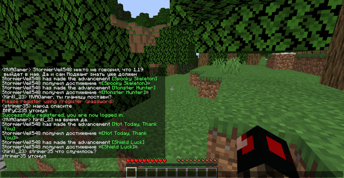В чате пошла зараза, мы все делали одну и ту же ачивку, где надо было ударить моба палкой. Пхах)
