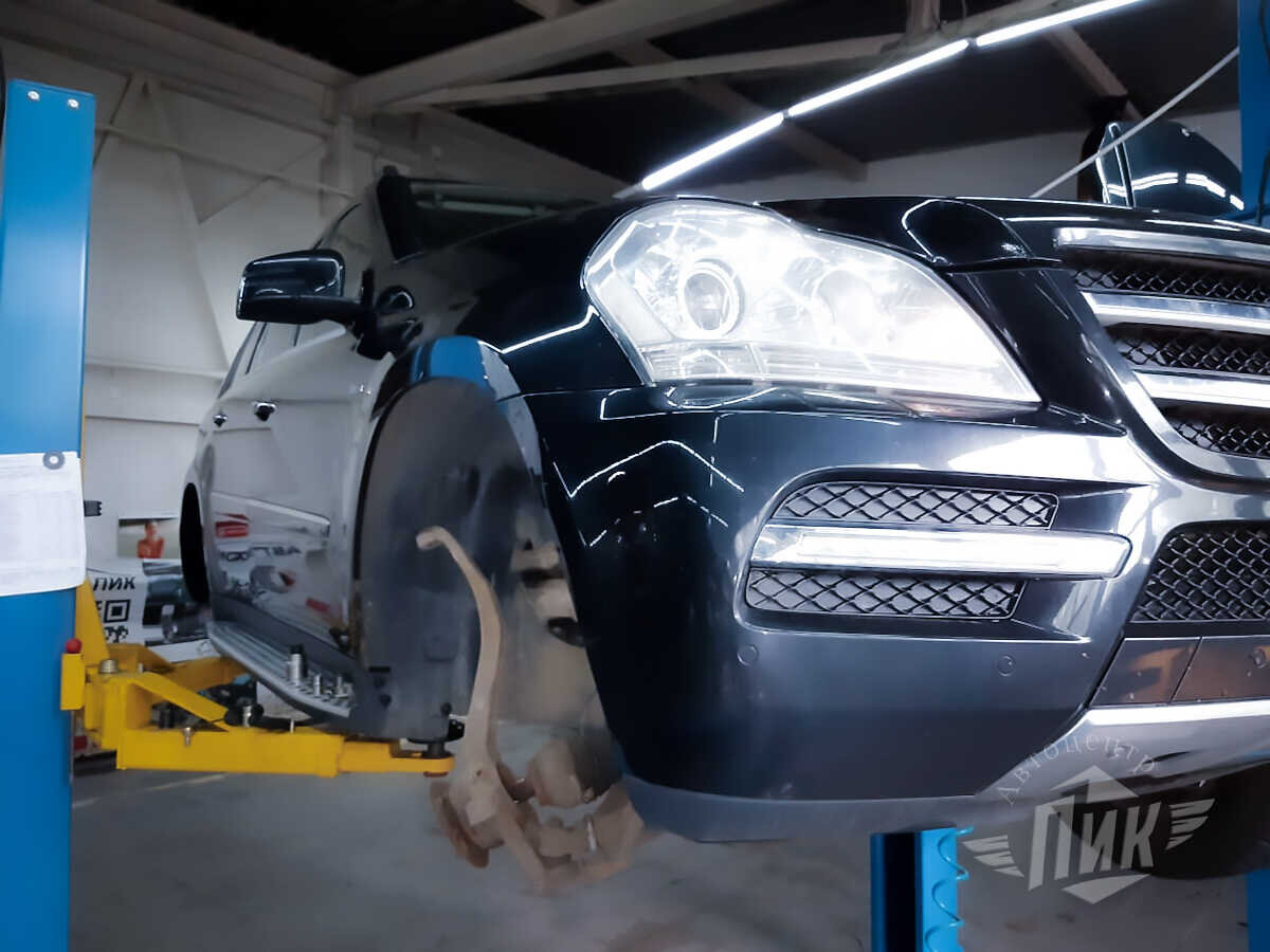 Владелец Мерседес GL в кузове W164 приехал на нашу станцию для замену ступичного подшипника. Он заранее позвонил для бронирования времени и для заказа всех запчастей. К приезду Mercedes все детали мы подготовили. Осталось подтвердить диагноз и устранить неисправность. Начали с осмотра ходовой части. Проверили все составляющие подвески. Ничего не вызывало вопросов, кроме ступичного подшипника. Действительно, элемент шел под замену. Увидели, что он имеет осевой люфт. Компьютерная программа в таком случае дает ошибку по датчику частоты вращения колеса. Подвеска Мерседес GL Какую роль играет ступичный подшипник в общей схеме элементов подвески? Если говорить простыми словами, то он связывает колесо с подвеской. По нашему опыту хорошо работает элемент при пробеге до 150 000 км., затем имеет смыл проверить его на степень износа и спрогнозировать время замены. В нашем случае магнитное кольцо соприкасалось с подшипником, постепенно, приводило его в негодность. Интересно: оборудование Стар Диаг