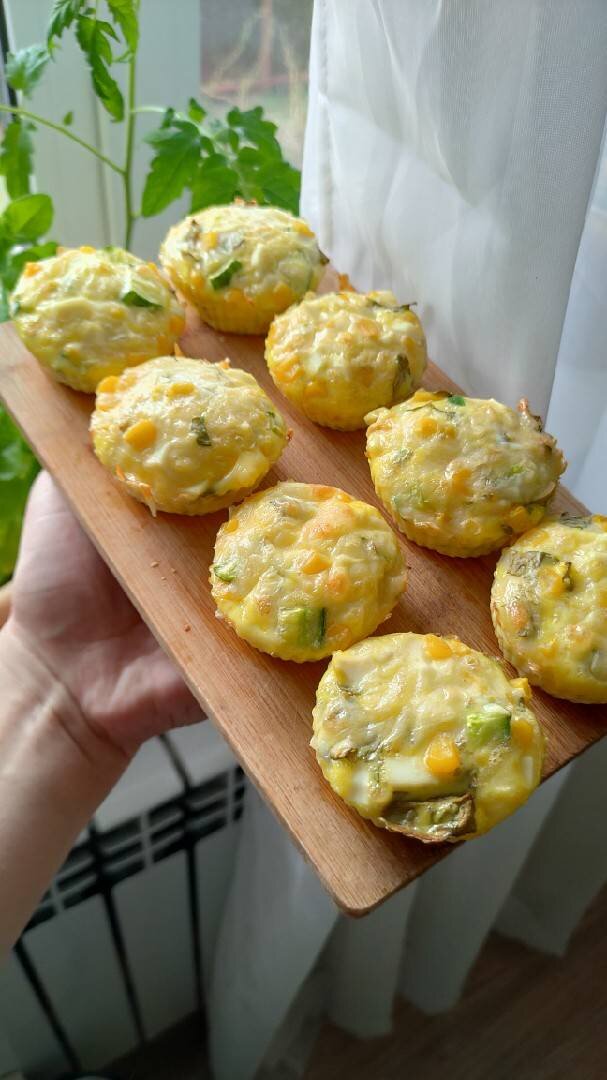 Как же здорово, что наконец-то весна, наконец-то будут свои овощи и зелень на столе Эти маффины очень просты в приготовлении, имеют множество вариаций, в зависимости от добавленной зелени, в то же время нежные и сытные и воздушные))) #завтрак #маффин #рецептназавтрак #омлет #зелень Ингредиенты: кукурузы, сыра, вареных яйца, сырых яйца, зелени (около 100 г), свежий огурец Способ приготовления: Измельчаем зелень (не слишком мелко не слишком крупно), огурцы и вареные яйца нарезаем небольшими кубиками и добавляем банку кукурузы (без жидкости). Добавляем 3 сырых яйца и все равномерно перемешиваем. Добавляем натёртый сыр и снова перемешиваем. Раскладываем по формочкам для кексов и ставим в разогретую до 180 градусов духовку на 20 мин. Наслаждаемся)))