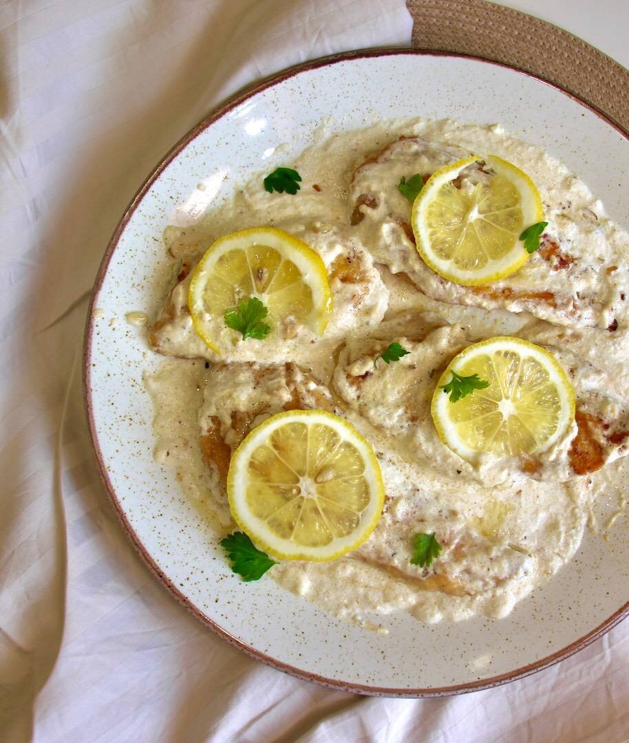Универсальное блюдо, которое можно подать с любым гарниром #рецептдня Ингредиенты: Филе куриной грудки , Мука , Пряные травы , Чеснок , Сыр , Сливки 10 % , Растительное масло для обжарки , Соль , Мускатный орех , Лимон, зелень по желанию для подачи Способ приготовления: Филе грудки нарезать вдоль и слегка отбить. Смешайте муку, соль и пряные травы. Обвалять филе в муке и слегка обжарить на разогретом масле до румяной корочки с обоих сторон. Таким образом обжарить все филе и отложить. Нарезать чеснок, обжарить в течение минуты. Затем, добавить сливки, натёртый сыр, прогреть помешивая до однородной консистенции, положить щепотку мускатного ореха. Выложить ранее обжаренное куриное филе в сливочно сырную массу, аккуратно перемешав прогреть 3 мин. Подавать, посыпав зеленью и по желанию дольками лимона.