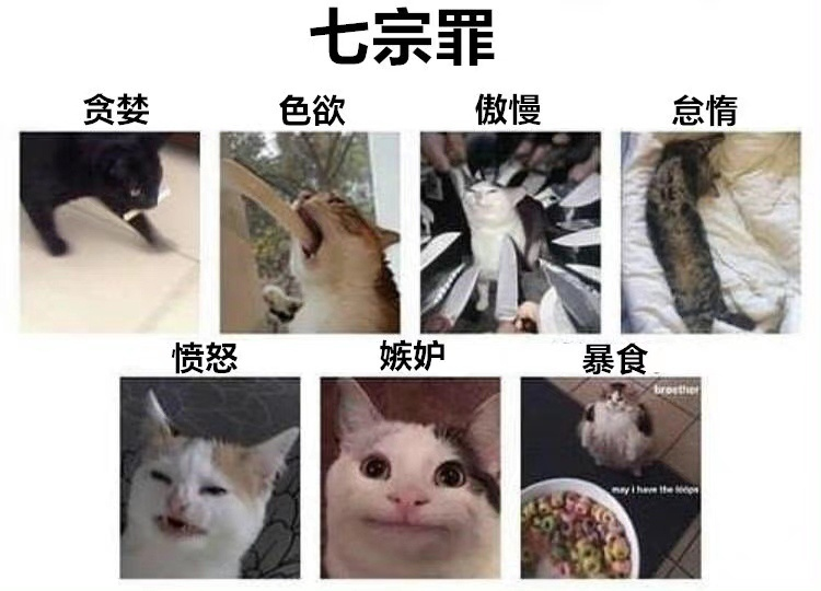 七宗罪 [qīzōngzuì] или "семь смертных грехов". Есть также и другие варианты названия: 七罪宗,七大罪,七原罪。