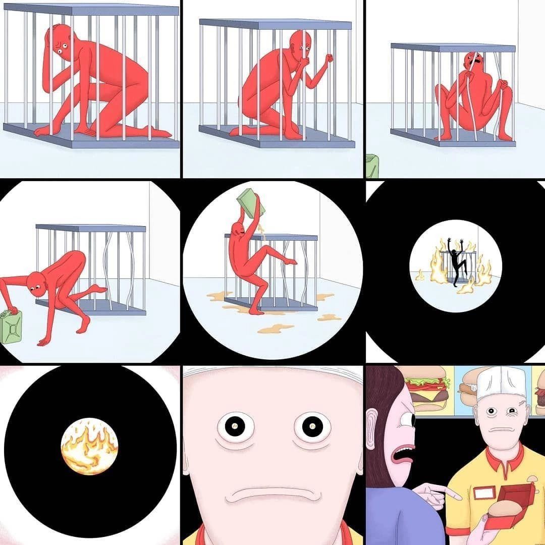 Тебе же с раннего детства вдалбливают дома, в школе, близкие, дядя Валера, тётя Мотя, блять, и незнакомые бабки в междугороднем автобусе: вырастешь – поймёшь, я за тебя плачу, тут ничего твоего, я старше значит я прав, перехочешь, а вот дети в Африке голодают, а вот сын маминой подруги на одни пятёрки учится. Ну и хули в результате получается – ты идёшь по жизни между детьми в Африке и сыном маминой подруги, между Сциллой и Харибдой, охуевая от происходящего. И на каждое, блядь, поколение находится своё объяснение, почему ты недостаточно хороший, шибко умный, слишком тупой, а, главное, совершенно неважный. От строительства светлого будущего до ужасов войны, от пятилетки за два года через лихие ТМ девяностые ТМ до просветлённого осознания, что все мы смешные незначительные песчинки на теле матушки-Вселенной. Мы все рабы химических реакций, вещает научпоп, наша склонность из разрозненных событий жизни создавать нарративное полотно – всего лишь неэффективная нелепая попытка справитьс