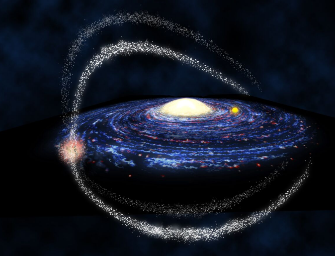Звездные нити. Оказывается они возникают из-за разрушительного действия Млечного Пути на галактических соседей. Плотные глобулярные (шаровидные) звездные кластеры (скопление однородных элементов), оказавшись вблизи Млечного Пути, распадаются на части. Происходит это под влиянием гравитации. Которая буквально «растаскивает» скопления десятков или даже миллионов звезд, превращая их в длинные и тонкие потоки – нити. И они вращаются вокруг нашей Галактики.