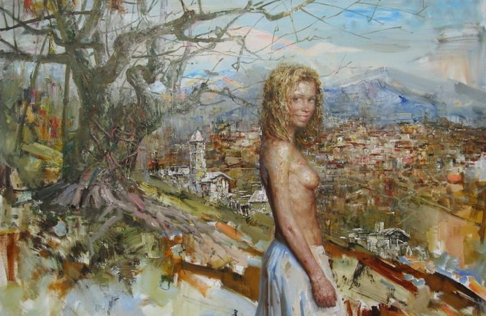 Возвращаясь домой с корзинкой ежевики Динара увидела мост и сидящего за ним Николая. Она, будто модель вспорхнула на мостик и грациозно прошлась по нему. Уставший Коля сидел и думал: