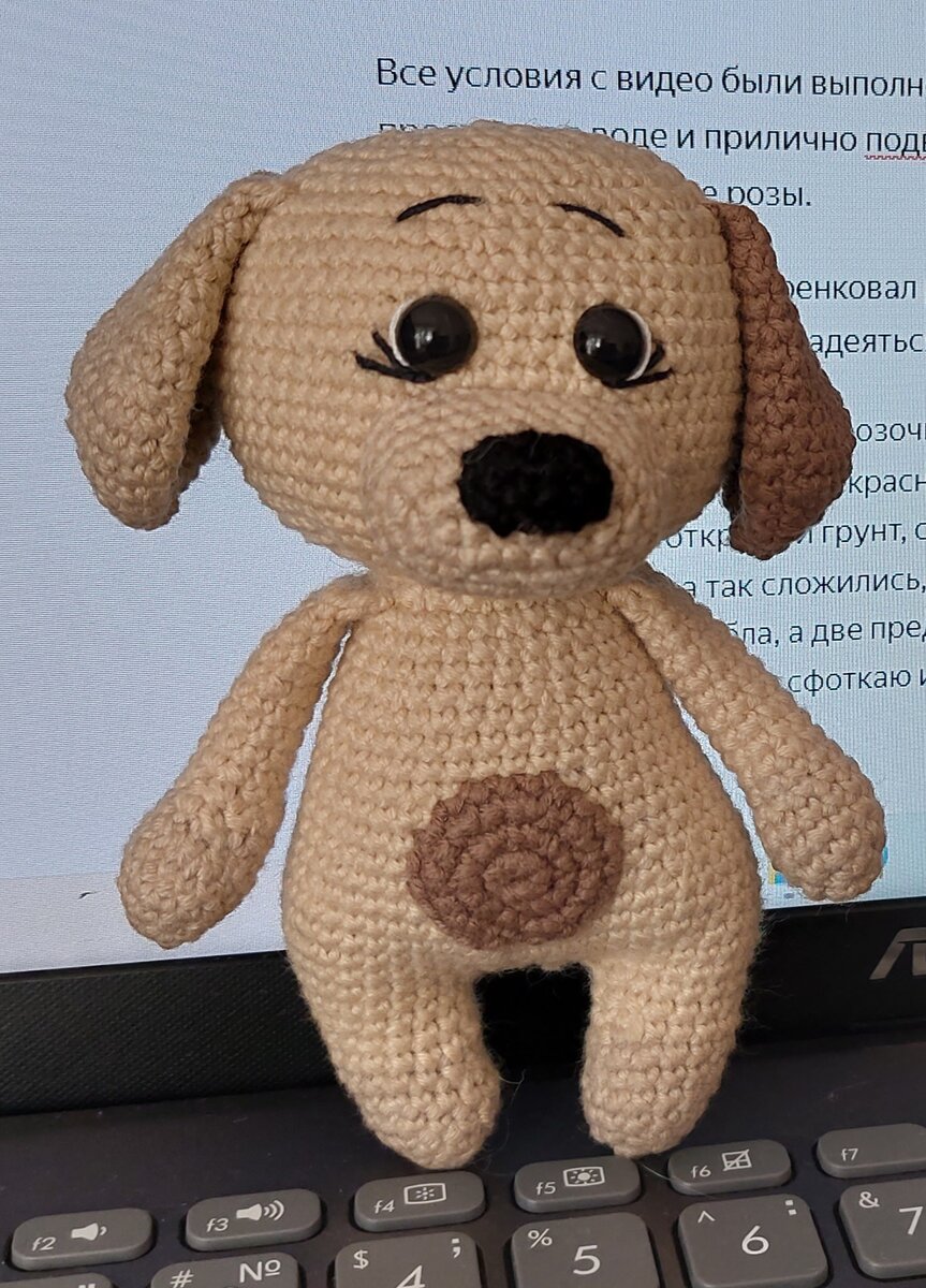 У меня готова собачка 😍🥳🎉 Она получилась меньше предыдущих игрушек примерно на пару см, т.к. я её вязала из пряжи газал беби коттон, а она тоньше чем ярнарт джинс. Кстати из газал мне не понравилось вязать игрушки, ниточка слоится, что очень тормозит вязание. Кто-нибудь вяжет игрушки из газал беби коттон, поделитесь своими впечатлениями? Может она только у меня слоится? Подписывайтесь на канал, делитесь этой статьёй в других соц. сетях, ставьте пальчик вверх, мне будет очень приятно 😇 Более 20 видео МК КРАСИВЫХ узоров спицами. Путеводитель по узорам спицами История рождения моих игрушек связанных крючком по одной схеме. Мои 5 видео МК ШИКАРНЫХ пледов крючком и мотив для пледа. Желаю всем РОВНЫХ ПЕТЕЛЕК, с уважением Лена 😘💐