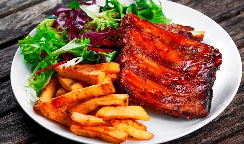 Когда я пришел работать в кафе у них был рецепт приготовления ребер, которому они придерживались. И знаете судя по тому что их заказывали за месяц не более 1кг это говорило о том, что рецепт был не о чем. И я решил выдвинуть руководству свою рецептуру приготовления ребер! После того как они попробовали, мой рецепт был добавлен в кулинарную карту! А видели бы вы их лица во время дегустации. Это была улыбка и нереальное восхищение... И так приступим ... Нам потребуется: -1кг свиных ребер -соль -минеральная вода -паприка -черный перец -соус "Терияки" -кунжут Способ приготовления В большую тару поместить 1 кг свиных ребер (желательно ребра нарезать на порционные кусочки) добавить... -1.5 ч.л соли -залить минералкой, что бы она покрывала ребра, ни в коем случае не переборщить, вода должна слегка покрывать их... Ребра чательно перемешать в течении нескольких минут Далее решайте сами если вы хотите жарить их на следующий день, то тару накройте пищевой пленкой и уберите в холодильник, если