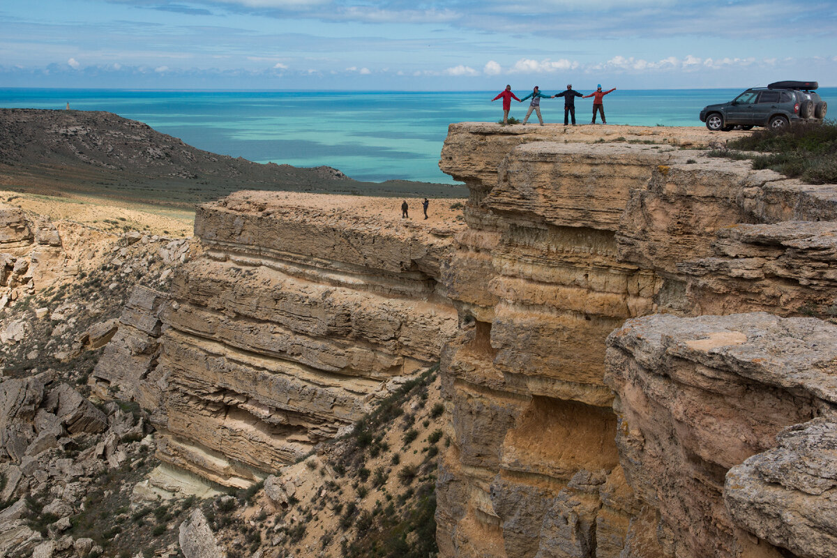 После подземной мечети Султан-Эпе открывался прямой путь на море. Это которое Каспийское. Крупнейший бессточный водоем на земле, к слову. Можно было ехать дальше вдоль берега, но решили срезать поверху и выползти к побережью в местечке Жыгылган, что в переводе означает «Упавшая земля». Дорога поверху – ровная степная – местами можно держать скорость в районе 70-80 км/ч.