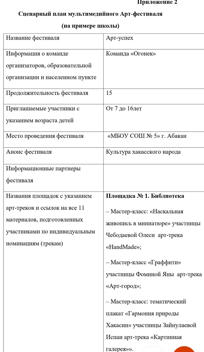 Сценарный план Арт-фестива
