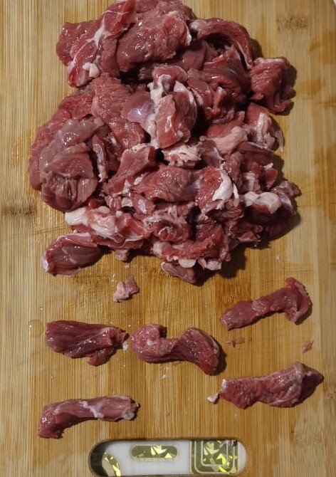 Мука - 1 ст. л. Сначала помоем мясо и нарежем его кусочки таким образом: Варим мясо для мягкости в небольшом количестве воды (она не должна быть выше мяса больше чем на 1 см), добавив туда растительное масло. Как только вода выкипает и говядина начинает жариться, мы добавляем к ней лук, нарезанный четвертинками, и мелко натёртый чеснок. Жарим минут 5. Далее добавляем томатную пасту, перемешиваем и жарим ещё пару минут. В это время в стакане с водой размешиваем столовую ложку муки вилкой; избавляемся от комочков. Добавляем воду с мукой к говядине и доливаем воду до необходимого уровня - он не должен сильно превышать уровень мяса. Ложим сметану и размешиваем. Добавляем соль, перец и другие специи по вкусу. Я положила немного молотого черного перца и кориандр. После закипания убавляем огонь до медленного и готовим 30 минут, доводим говядину до мягкости. Бефстроганов готов, дополняем его гарниром и наслаждаемся!
