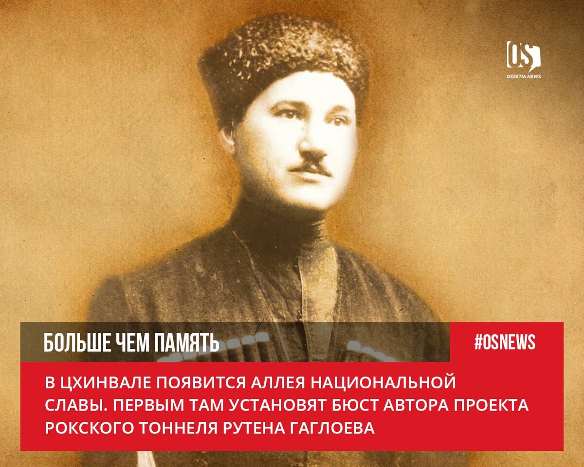 В столице Южной Осетии появится Аллея национальной славы, сообщает «РЕС» со ссылкой на пресс-службу Минкульта. «Точное месторасположение аллеи национальной славы пока не определено. Уже готов бюст инженера и общественного деятеля Осетии Рутена Гаглоева. Авторами работы являются заслуженные художники Южной Осетии Сармат Зассеев и Роберт Хубаев», — отметили ведомстве.
