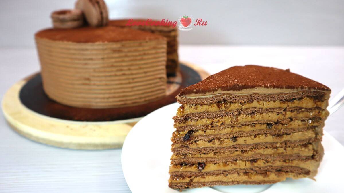 Шоколадно-кофейный торт с карамелизированными орехами приготовим без духовки. Шоколадные коржи будем выпекать на сковороде, это не займёт много времени и сил. Для коржей используем кофейную пропитку, прослоим шоколадным кремом и карамелизированными орехами. Покрывала я торт кофейным ганашем, тем, что готовила для начинки шоколадных макарон из прошлой публикации. Такой торт на сковороде очень выручит, если у вас нет духовки. КБЖУ на 100 г примерно: 407/6/27/35. Ингредиенты Торт весом около 1,8 кг, высотой 8 см, диаметром 18 см: Шоколадное тесто (8 коржей 18см): 170 г сметаны 1 неполная ч.л. соды 120 г сахара 300 г пшеничной муки 25 г какао-порошка Кофейная пропитка: 100 мл сливок или молока 1 ч.л. сублимированного кофе 1 ст.л. рома/коньяка 1 ч.л. сгущённого молока Карамелизированные орехи: 120 г орехов (у меня миндаль, фундук и арахис) 20 мл воды 60 г сахара 10 г сливочного масла Шоколадный крем: 130 г сливочного масла комнатной температуры 250 г варёного сгущённого молока комнат