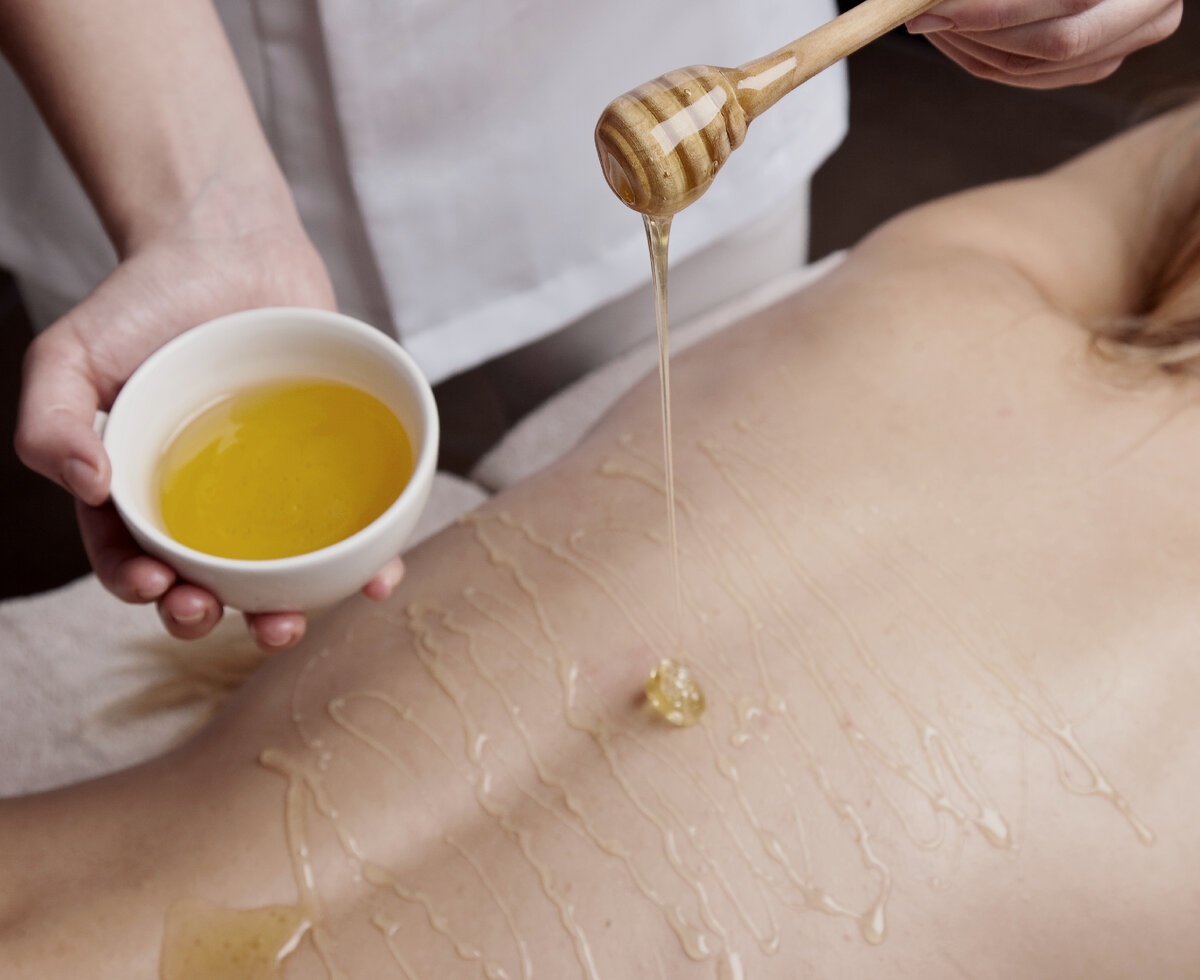 Медовый массаж – достаточно популярная процедура, которая даёт как косметический, так и оздоровительный эффект. Если подробнее и конкретнее, во время медового массажа идёт активный прилив крови к месту воздействия - появляется покраснение кожи, она становится очень тёплой, даже горячей. Поэтому этот вид массажа хорошо снимает мышечные боли, помогает при болях в суставах. Активный прилив крови полезен и на проблемных зонах, поэтому медовый массаж является прекрасным средством от целлюлита. Прорабатывается также слой подкожно-жировой клетчатки, идёт мощная стимуляция в соединительных тканях за счёт создаваемого вакуумного эффекта, задействуются даже мышцы. Этот эффект применяется и в борьбе с отёками, то есть медовый массаж – это ещё и лимфодренажный массаж. Кстати, такой массаж – очень хороший способ профилактики растяжек. Если во время медового массажа капилляры лопаются, образуются мелкие гематомы, то это способствует запуску иммунной реакции, так как организм пытается восстановить ка