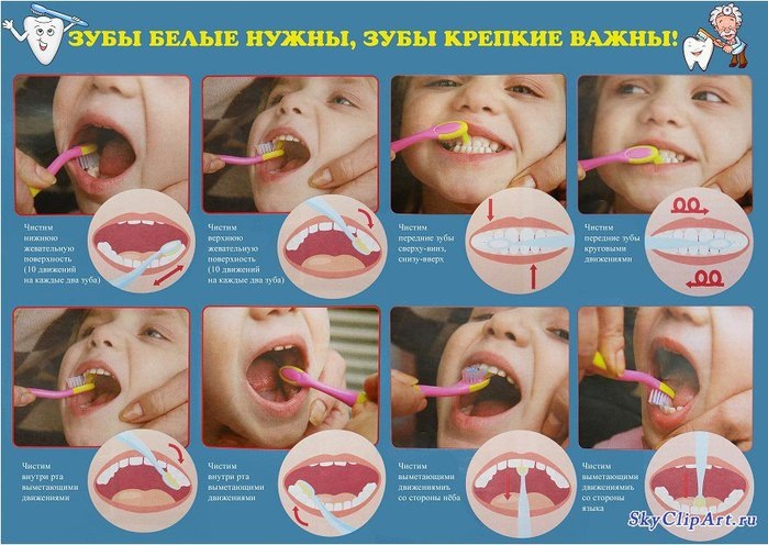 Благодаря использованию мнемокарт и мнемосхем для облегчения процесса запоминания стали использовать мнемокарточки, которые состоят из мнемосхем, отражающих весь процесс чистки зубов. Вся информация о том, что должна донести до детей, я закодировала в предметные и графические образы. В процессе работы с мнемокарточками дети должны научиться основным движениям зубной щётки (их в алгоритмах четыре) и их последовательности, а также ориентации в пространстве, в нашем случае это ротовая полость. Ребенок должен уметь различать верхнюю и нижнюю челюсть, а также фронтальные и жевательные зубные ряды, правую и левую половину челюсти. Для решения этих задач, с детьми проводится предварительная работа по модели-заместителю, здесь эти задачи решаются в комплексном варианте. В первую очередь дети знакомятся с алгоритмом чистки зубных рядов, затем они выделяют основные движения зубной щётки и механически их запоминают и в-третьих, легко запоминают и выделяют верх – низ, право и лево и так далее. Ра