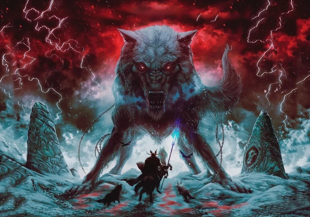 Гномы со стенаниями покинут свои дома в обваливающихся скалах, и даже великое Мировое Древо со скрипом наклонится к земле. Из-за сотрясений мира лопнут все оковы и освободятся чудовища. Волк Фенрир выберется из цепи Глейпнир, и спустя столько лет заточения он будет грезить жаждой мщения. Его подобный пещере рот раскроется так широко, что нижняя челюсть будет волочиться по земле, а верхняя достигнет небес и закроет последний тусклый свет.