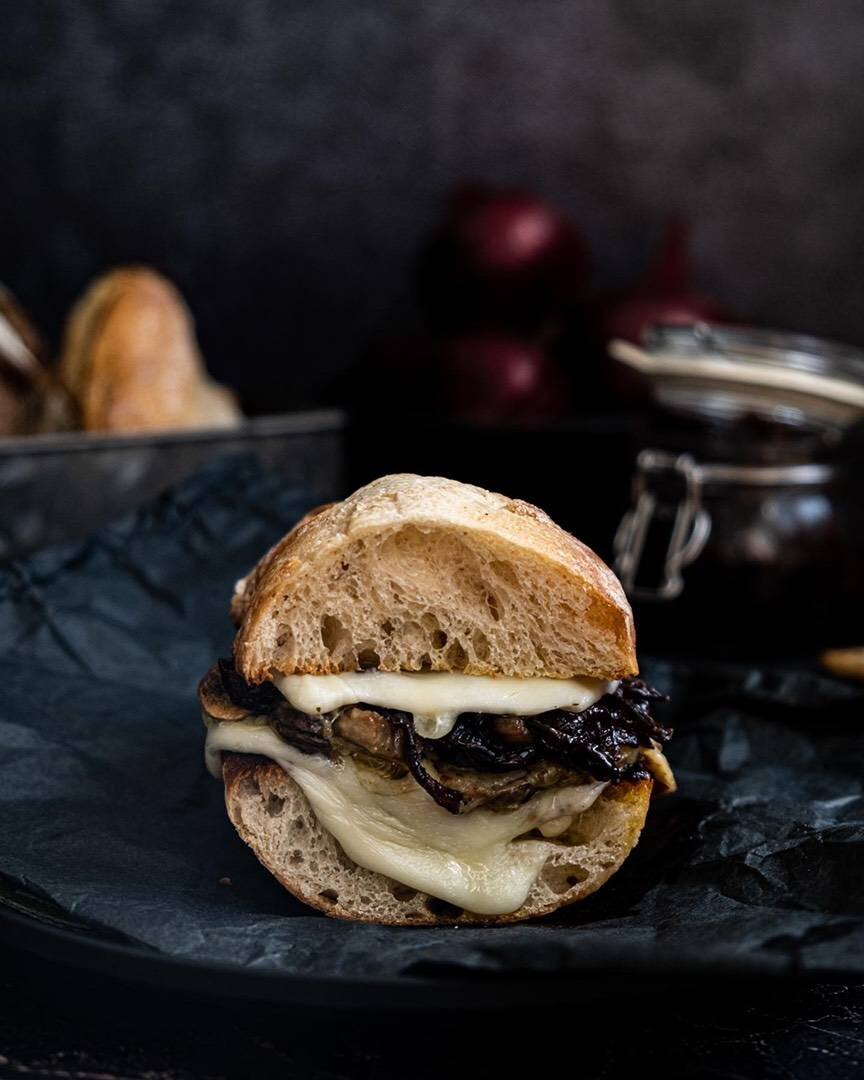 Сытный сэндвич с грибами, сыром моцарелла и карамелизированным луком 🧅