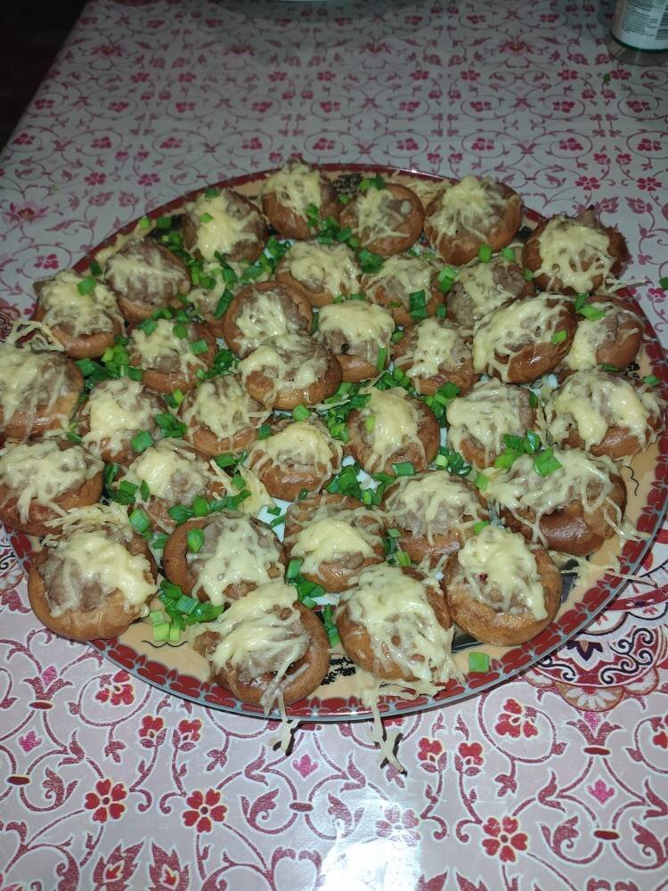 Ингредиенты: Бублики (сушка), молока, Фарш (за смаком) свинина краще всього, середня цибулина, Чорний перець, Сіль, яйце Способ приготовления: Викласти бублики залити теплим молоком (не гарячим) і залишити на 10 хв. Тим часом приготуйте фарш. До фаршу додайте яйце, сіль, перець, і цибулю (подрібнену) можна ще спеції за смаком). Все перемішайте) Коли бублики трішки розм'якнуть виложіть їх на ємкість для запікання, і розподіліть фарш) Ставимо в духовку на 180° на 15 хв. Потім додаємо натертий твердий сир и ще приблизно на 5-10 хв. Смачного!