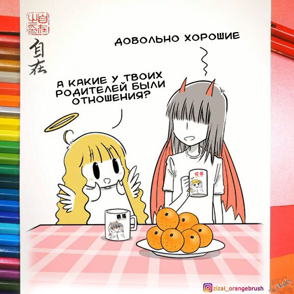 Хотя история развития отношений родителей Демоненка еще только началась, но есть небольшой спойлер об их семейной жизни от самого мальчика. Заодно, здесь наконец-то задается вопрос, который периодически я вижу в комментариях - почему Демоненок седой? Хотя во время знакомства мама Демоненка еще не была такой сильной, но постепенно она училась у своего мужа, а также у его мамы, так что вскоре стала довольно сильной ведьмой. Так что и Демоненок родился с очень сильной магией, впитав ее от отца и матери в равной степени. Смотря на эту парочку, я вспоминаю "Семья шпиона". Те, кто интересуются японской культурой, скорее всего уже сталкивались с мангой, по которой сейчас выходит аниме. Там тоже и папа сильный, и мама с сюрпризом, а дочка которая все про всех знает, довольно самостоятельная и тоже любому фору даст. Правда по атмосфере напоминает эту часть истории. И чтобы не ломать традицию и рост статистики, запускаем в комментариях флешмоб - пишем три добрых слова на букву "Е". Такая игра