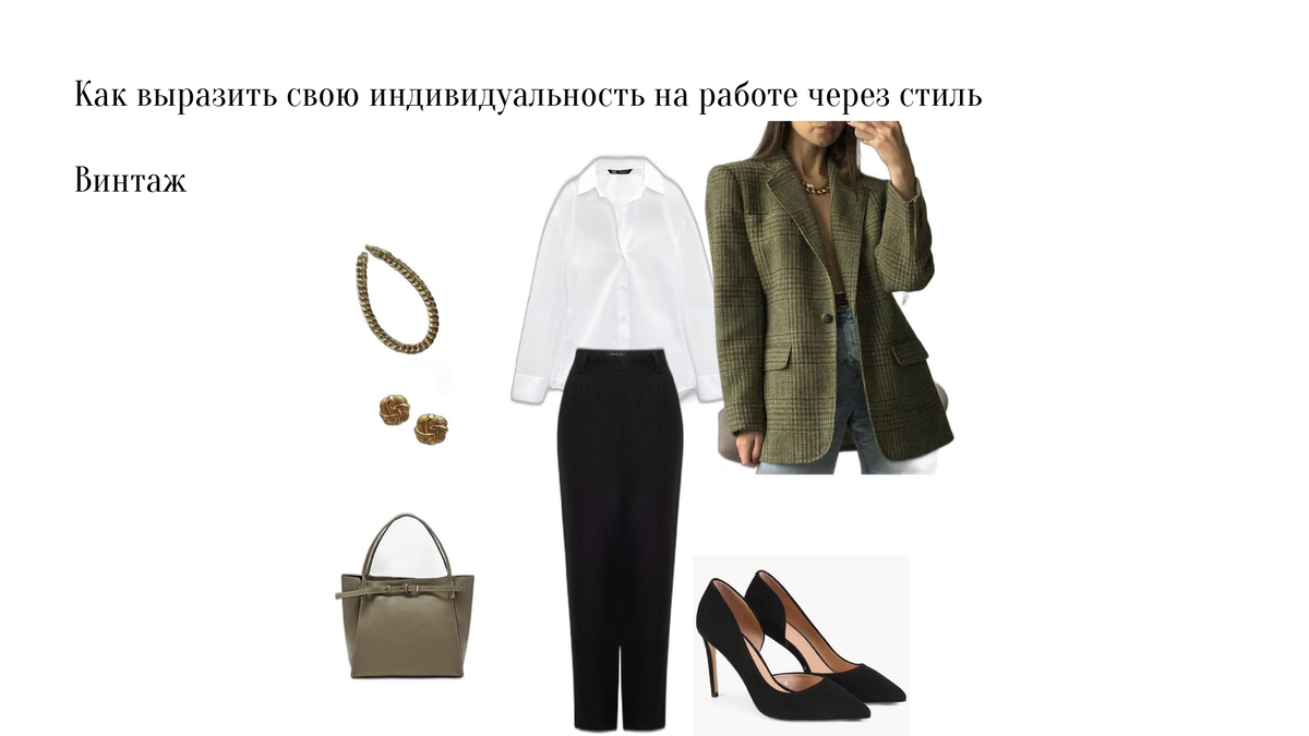 Строгий стиль юриста можно дополнить винтажными элементами одежды и украшениями. Например, классическая белая рубашка и чёрные брюки сочетаются с винтажным жакетом и винтажными украшениями. С помощью таких необычных элементов образ приобретает совершенно новый, оригинальный эффект. Делюсь с вами аккаунтами, где можно посмотреть и приобрести винтажные изделия: @venska.vintage @vintage.kapsula @dct_vintage_japan @vintage_voyage @windofcharm @vintage_heritage @yes.theyare @vintagedream_ru @818.vintage