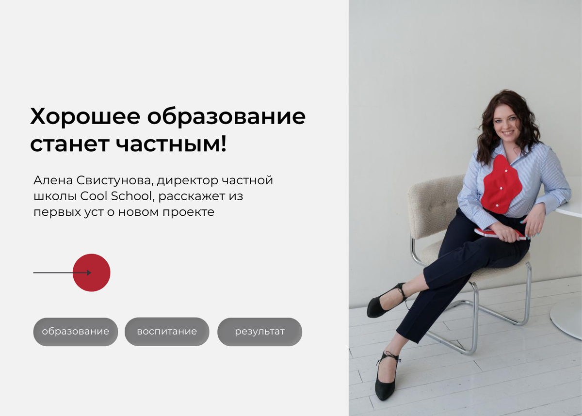 И наконец, для меня это миссия – построить то место, в котором дети будут счастливы учиться. Я как бизнесмен уже состоялась, мне никому не нужно ничего доказывать. Хочется просто оставить свой след в этой жизни.