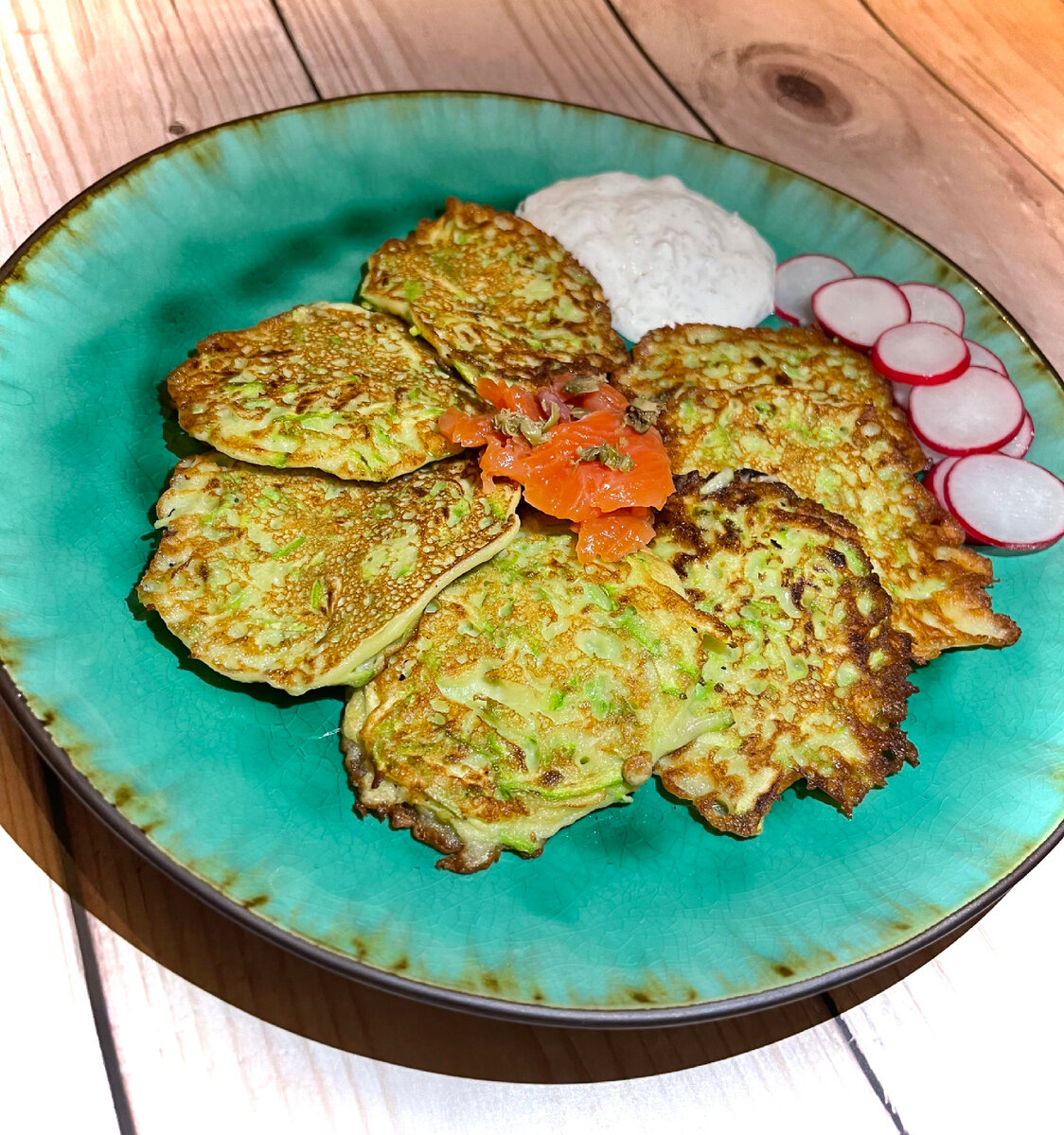 Оладьи из кабачка в паре с сёмгой на завтрак👌