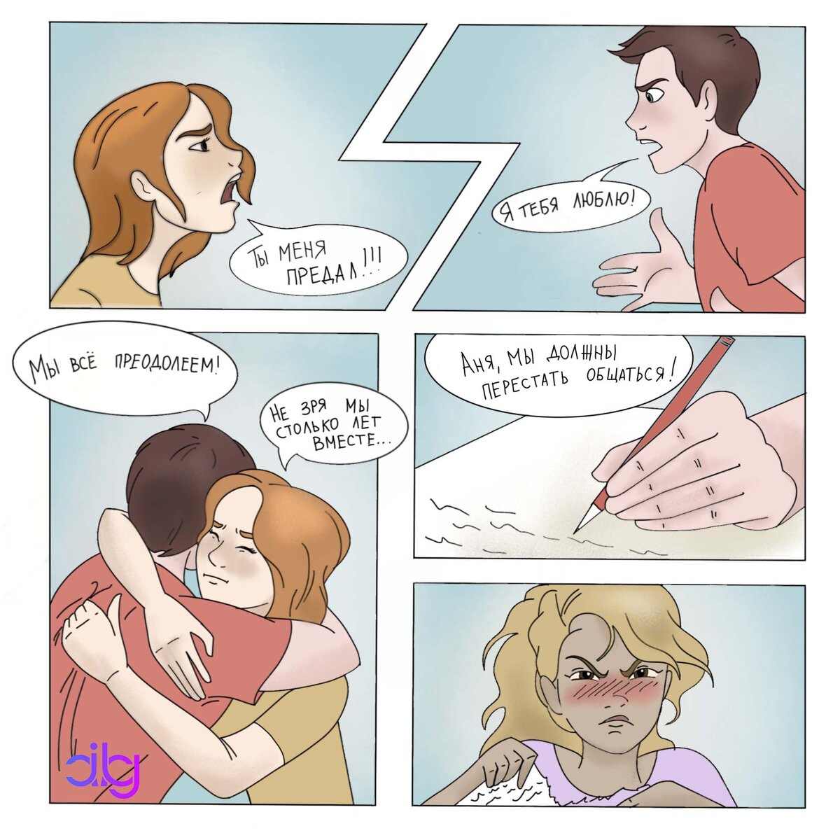 Психолог помог Мошкиным понять, что в их семейной жизни не так и что делать. На первой сессии Сережа и Маша обозначили круг проблем, поставили цели и разработали стратегию. Вместе с психологом они нашли причину отстраненного поведения Маши к Сереже и причину влечения Сережи к Ане. Теперь они смотрели друг на друга по-новому. Маша не сильно воодушевилась, а вот Сережа был уверен, что у них все получится! В качестве первого шага он решил написать Ане о необходимости прекратить общение во избежание недоразумений. Сережа пишет Ане длинное письмо. Он честно рассказывает, что у него есть семья, которую он любит. Он не хочет в один миг разрушить отношения, которые создавались годами. Сережа желает Ане встретить свою вторую половину и обещает, что всегда готов прийти на помощь в сложной ситуации. Аня хоть и обижена, но виду не подает. Она решила проигнорировать его сообщение. На этом закончилась история Сережи и Ани.