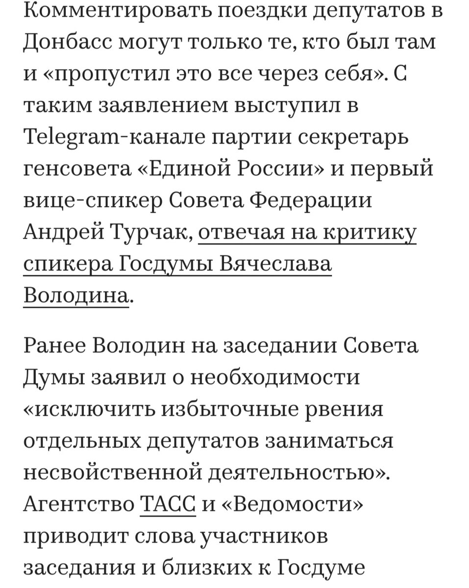 Комментировать поездки депутатов в Донбасс могут те, кто был там