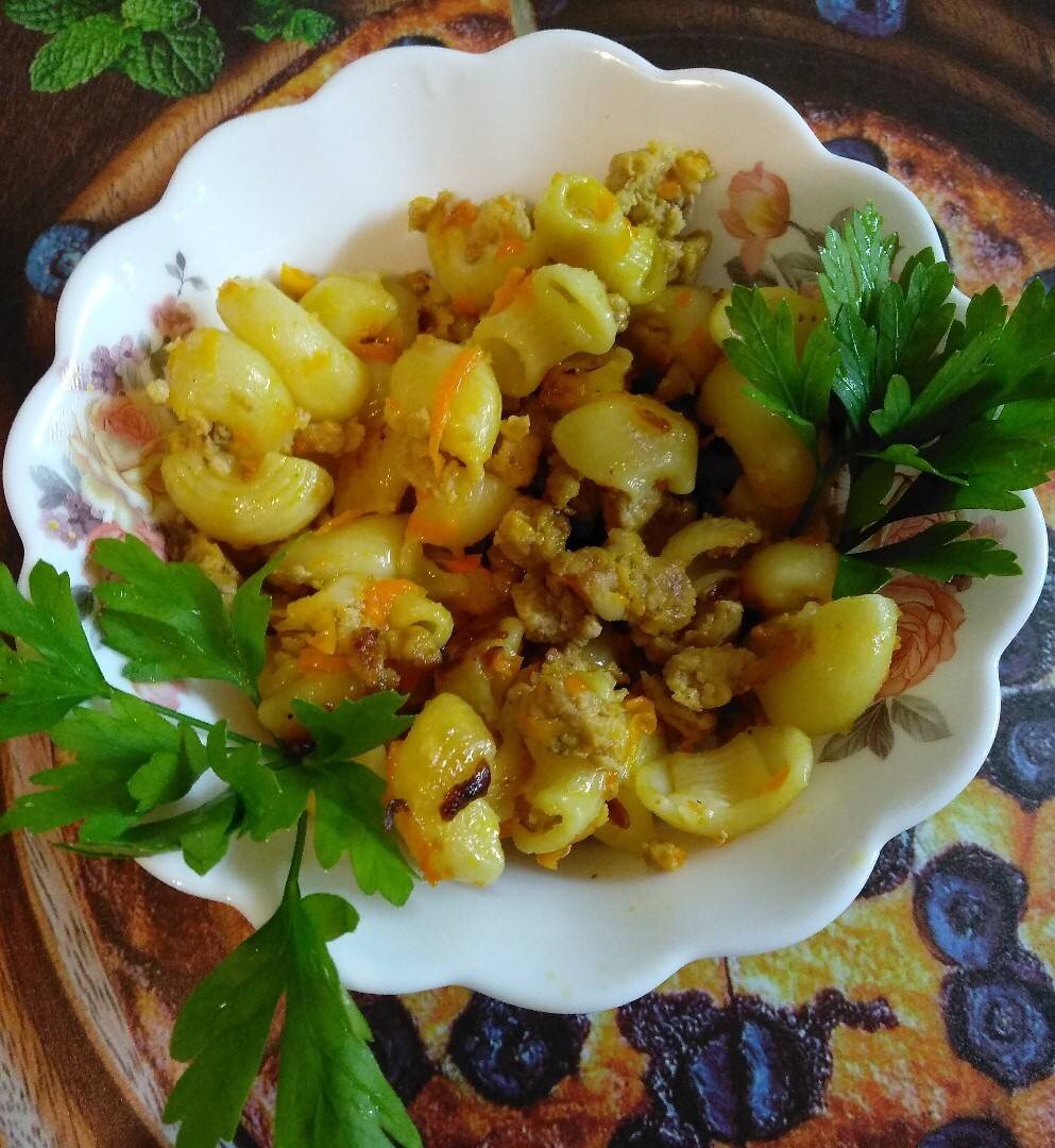 Наверное, самое простое блюдо, какое только может быть. Но очень часто выручает, когда надо на семью что-то сытное приготовить. Может считаться как ПП, так и не ПП. #непп #пп Ингредиенты: фарша индейки, макарон, морковь, крупная луковица или 2 маленькие, масло для жарки, соль и молотый перец , куркумы Способ приготовления: Кладём на сковородку обжаривать фарш. Обжариваем мин.5. Нарезаем и добавляем лук. Затем морковь. Солим, перчим и добавляем куркуму. Пока фарш с овощами доходит до готовности (мин.10-15.), отвариваем макароны. Сливаем лишнюю жидкость через душлаг. Добавляем к фаршу. Перемешиваем. Закрываем крышкой ещё на мин. 10-15, периодически перемешивая. Готово 😊.