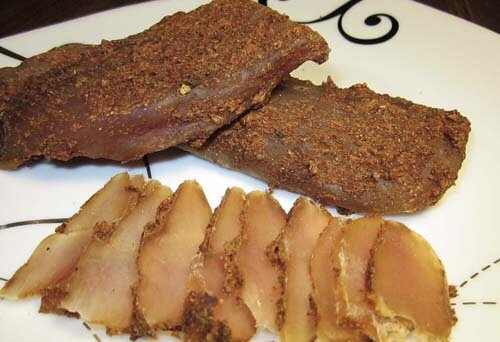 Бастурма из куриной грудки отличная закуска к пиво а так же просто к столу