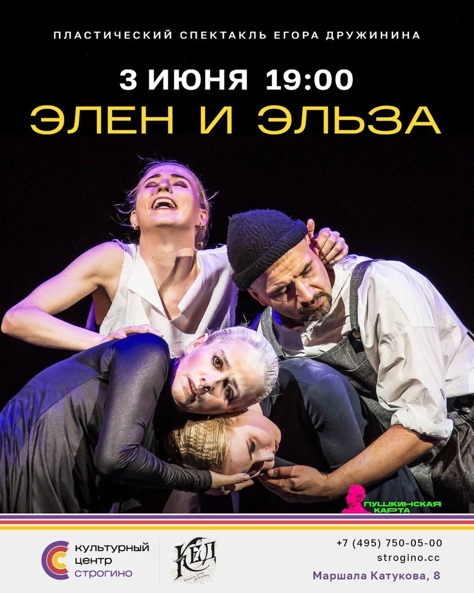 ЭЛЕН И ЭЛЬЗА. ПЛАСТИЧЕСКИЙ СПЕКТАКЛЬ ЕГОРА ДРУЖИНИНА ⚡️3 ИЮНЯ В 19:00 на сцене культурного центра Строгино на ул.Маршала Катукова, 8! История Элен и Эльзы – повествование, полное романтических эпизодов и неожиданных драматических коллизий. Главные героини спектакля — дочери хозяина мастерской, изготовляющей костюмы и обувь для балета. Это гимн таланту и трудолюбию. Эльза мечтает стать балериной, Элен – продолжить семейное дело. Несмотря на все испытания, уготованные судьбой, девушки найдут в себе силы не изменить своей мечте Драматический спектакль «Элен и Эльза» — это ода таланту, любви трудолюбию. Музыку к спектаклю написал музыкальный продюсер проекта «Танцы на ТНТ» – Тимур Самигуллин. 🔶Главные роли сыграют сестры Анастасия и Виктория Михайлец – участницы телевизионного проекта «Танцы на ТНТ» и американского телевизионного проекта So You Think You Can Dance. Им предстоит сыграть двух близнецов – Элен и Эльзу. Хореографию к спектаклю создали: Дмитрий Масленников – участник телевиз