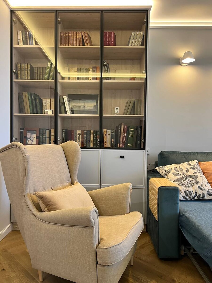 Недавно была в гостях у заказчиков, в реализованном проекте, посмотрите какая красота получилась) Проект был без авторского надзора, но я помогала с ключевыми моментами: подбор краски, материалов для мебели, светильниками. А все остальное заказчица контролировала сама! Так же, у нас не было визуализаций, заказчики выбрали вариант с коллажами. И уже ориентируясь на них, блестяще справились с реализацией (ну и конечно же были все необходимые рабочие чертежи для строителей😄). Коллаж гостиной В процессе реализации я не видела ни одной фотографии. И что вообще происходит на объекте) Есть такие клиенты, которые хотят удивить уже финальным завершенным интерьером)) А я сижу и мучаюсь в процессе без фотографий😅 мне ведь интересно, как идет процесс, и всё ли получается)) В итоге, как доделали финальные штрихи, меня позвали в гости ❤️ Фотографий я сделала мало, так как ходила и щелкала глазами)) Всё получилось превосходно) Рассказали, как им живется в обновленном гнездышке❤️ Клиенты пришли с з