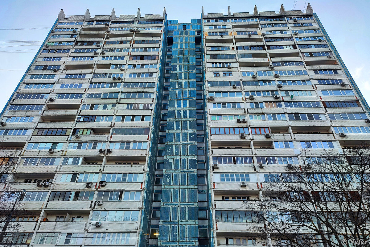 Здания сразу привлекают к себе внимание, когда выходишь из метро. Двенадцать одинаковых советских жилых домов, построенных вдоль улицы. С одной стороны она называется Ясногорской, с другой — Тарусской. Между ними пустырь, который до сих по не застроен. В нижней части имеются пилоны-контрфорсы, которые как бы придают устойчивость зданию. Дома построены сдвоенными группами. В башнях по одному подъезду и 252 квартиры. Нумерация сквозная для каждой пары: 1-252 и 253-504. Это застройка 1980-х, настоящие советские человейники. Самый первый дом построен в 1982 году, последний — в 1986 году. Дома блочные. Серия называется II-68/22-2 (И-580). Насколько я понимаю, конкретно такая модификация есть только в Ясенево. Первый этаж нежилой, помещения занимают магазины, салоны, аптеки и другие конторы типа Wildberries и Гемотеста. В одном из домов расположена библиотека, в соседнем — почта. Многие помещения пустуют. Заинтересовала одна комната, стала фотографировать ее через стекло, вышел кон