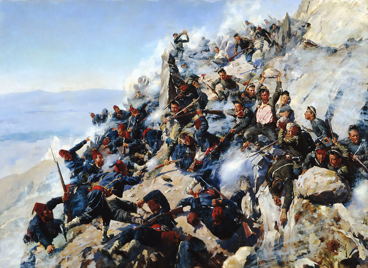 После переправы через Дунай, необходимо перейти Балканский хребет. Российские войска занимают Шипкинский перевал - важная стратегическая точка. С июля 1877 года по январь 1878 год шесть тысяч солдат Орловского и Брянского полков, совместно с пятью болгарскими дружинами (7500 человек), обороняют Шипкинский перевал от 28 000 Турецкой армией. Российские войска были окружены с трех сторон, но основной удар по армии нанесли холода и голод. В январе турки отступают, открыт путь на Константинополь.
