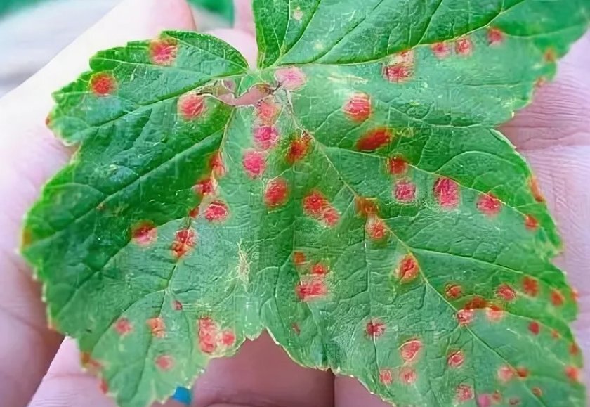 Смородина Причины красных пятен на смородине Спровоцировать появление на листах смородины красных пятен могут различные заболевания и насекомые-вредители. Своевременное лечение поможет спасти растение и сохранить урожай. Антракноз: грибковое заболевание Возбудителем является гриб Colletotrichum orbiculare. Споры переносят животные и насекомые, распространяется ветром и дождем. Гриб особенно любит теплую и влажную погоду, поэтому начинает размножаться с июля, а пик развития приходится на конец лета. Риск заражения велик у кустов смородины, растущих на кислой почве, при нехватке калия и фосфора. Первые симптомы антракноза появляются на нижних листьях растения. Одиночные мелкие пятна от темно-красного, до буро-коричневого цвета со временем сливаются в одно большое пятно. Лист смородины сворачивается, засыхает и опадает. Красно-галловая тля При посадке кустов смородины следует учитывать, что эти вредители обитают в местах роста таких трав, как шалфей, мята, душица, лаванда и чабрец. Красн