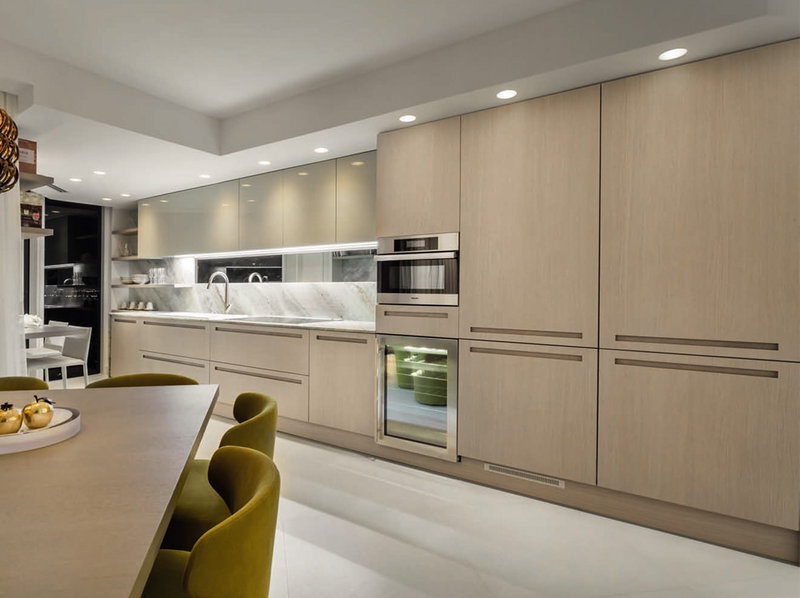 Высота самих отсеков зависит от того, как часто готовят и что хранят на кухне хозяева. Например, если места мало, но нужно организовать много вещей, пригодится дополнительный антресольный модуль или более высокие, чем обычно, навесные шкафы. Нижние лучше оставлять в стандартных размерах, но можно поэкспериментировать с внутренним наполнением: сделать нестандартное расстояние между полок, добавить вертикальные и выдвижные секции и т.п. Это поможет организовать разноплановое хранение, подходящее именно вам.