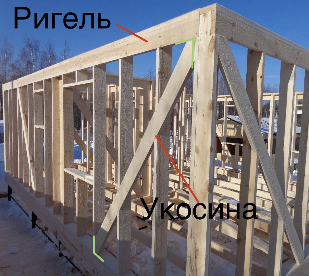 Всем снова здравствуйте!✋🙋♂️ Есть две распространённые технологии каркасного домостроения : Финская и Канадская. *Ригель - за счёт своего расположения «на ребре» снимает нагрузку со стоек, оконных, дверных проёмов. **Укосина - её роль сдерживать конструкцию от боковой нагрузки (Раскачиваний), держать форму стены неизменной. 2.Канадская - в данной технологии не используется верхний «ригель», укосина не запиливается в упор угла, а впиливается в верхнюю и нижнюю доску стены, тем самым создаёт дополнительный узел сопротивления боковой нагрузке, особенно если укосина выполнена строго на 45 градусов и проходит через 3 стойки как на фото: Выбрал для нашего будущего дома канадскую технология каркасного домостроения так-как проектировать и в дальнейшем строить решил одноэтажный жилой дом не большой площади под электроотопление конверторного типа - но это будет другая статья😉👍 Нагрузка сверху вниз у одноэтажного дома меньше чем у двухэтажного, по этому решил не использовать верхний риге