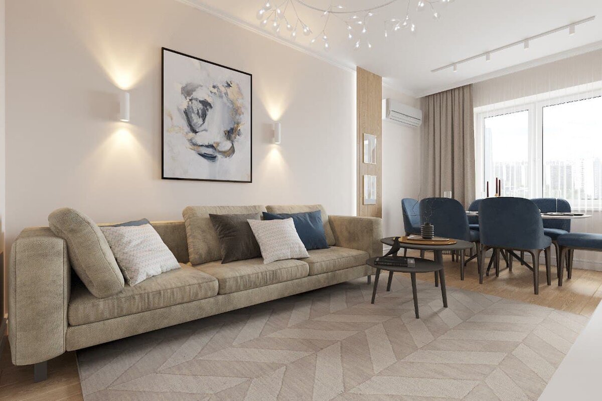 Пожелания заказчиков были следующие: - классный современный интерьер; - изолированные комнаты для каждого ребёнка, а их в семье три: две девочки и мальчик; - во дворе дома растут деревья и летом сильно затеняют квартиру. Клиентам хотелось больше света и ощущения простора. Что мы сделали: - предложили дизайн-проект в современном стиле, но с элементами неоклассики. Универсальный вариант, который понравился всем членам семьи; - выполнили огромный фронт работ: демонтаж стен и пола. Выровняли всё! Заменили систему отопления; - чтобы в квартире было уютно и комфортно, недостаток света компенсировали светлыми материалами как в отделке, так и в мебели. Установили дополнительное освещение. В итоге, проект понравился всей семье и уже реализован