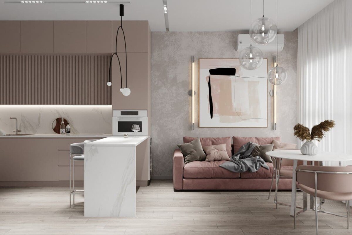 И это тот случай, когда заказчики четко представляют себе цветовую гамму, в которой хотят жить. Для жены было принципиально важно, чтобы интерьер был целостный и состоял из пудрового, серого, бежевого и серо-бежевого оттенков. Мы спорить не стали, так как эти цвета вполне гармонируют между собой. И вот, что у нас получилось!