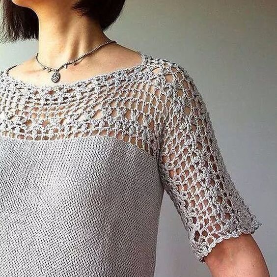 Иногда так трудно выбрать между вязанием крючком и спицами! Хочется всего и сразу 😊 Так тоже можно. К примеру часто рукодельницы сочетают спокойную лицевую гладь с элементами, связанными крючком. Обычно кружевными оставляют плечи, рукава, край подола. Серая туника вяжется легко. Основа связана по кругу спицами, а затем довязаны кокетка и рукава, представляющие собой два длинных прямоугольника, соединённых по плечу. Никаких швов! Сама нежность... Очень понравилась голубая модель с кружевной кокеткой и отделкой по краю рукавчика. Но я бы связала без передней застёжки, по кругу. Изысканная весенне-летняя туника. Превосходное исполнение! Цепляющие взгляд детали: подчеркнутая талия, боковые разрезы, слегка расклешенный рукав. Отличное вязаное платье для любого случая. Полупрозрачный подол можно носить всем! Но сначала стоит серьёзно подумать над тем, на какой именно длине начинать вывязывать "прозрачность" 😉 И рукав бы довести почти до локотка. Милота да и только 😍 Детская вязаная кофточ