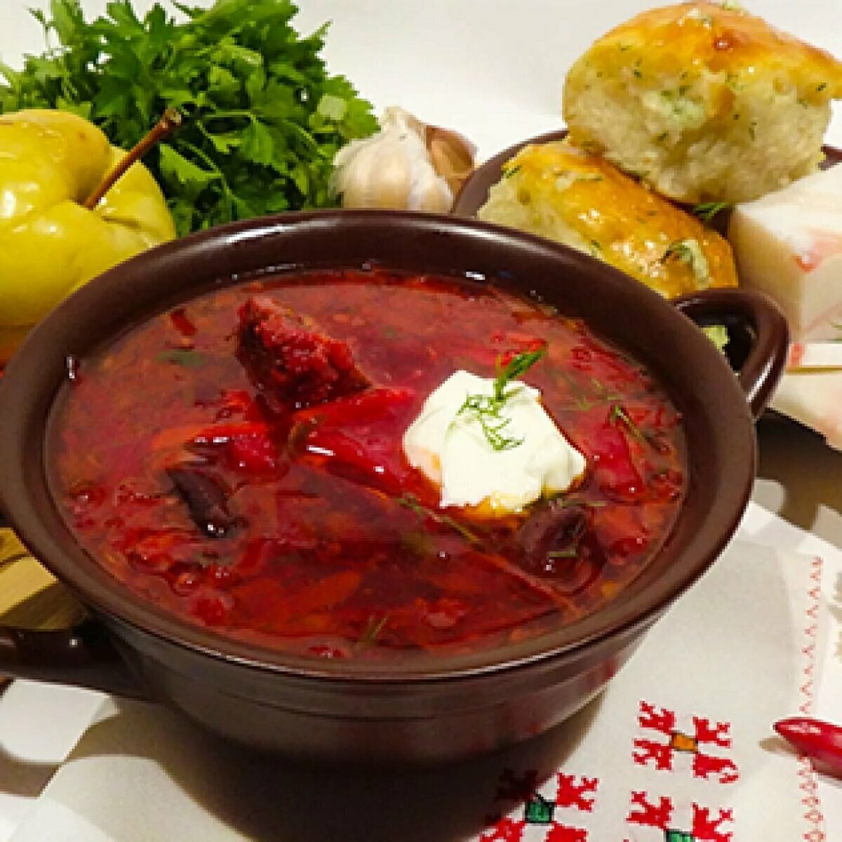 ИНГРЕДИЕНТЫ: Мясо (говядина, свинина, курица) 400-450гр. Картофель 4 шт. Луковица 1 шт. Морковь 1 шт. Свекла 3 шт. Капуста 1/3-1/2 шт. Чеснок 2-3 зубчика Томатная паста 2 Ст. ложки Уксус 1 Ст. ложка Соль, перец, растительное масло По вкусу Вода 3-4 Литров ПРИГОТОВЛЕНИЕ : Подписывайся Приятного аппетита!