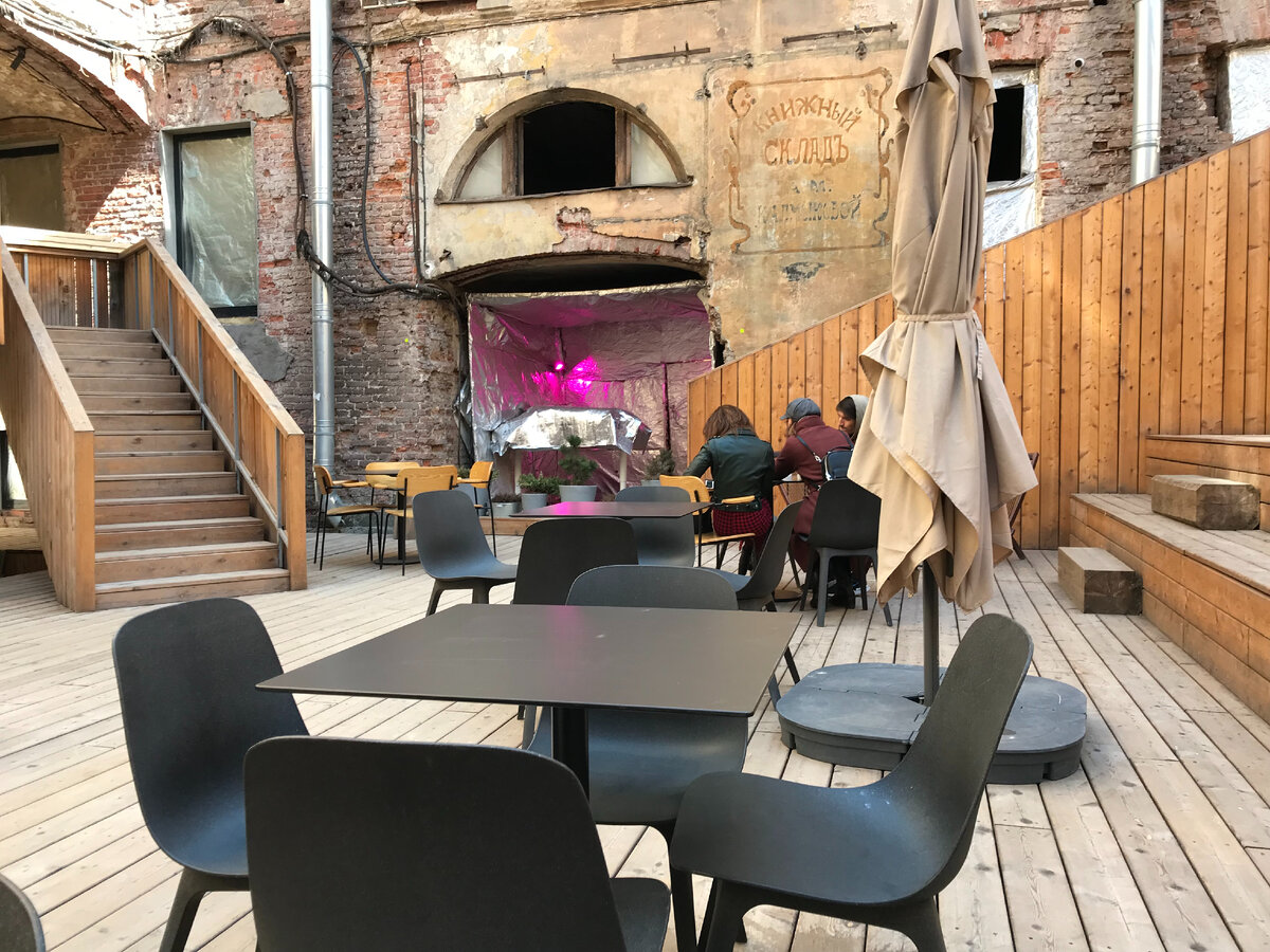 В Петербурге немало так называемых креативных пространств, где можно погулять, послушать музыку или какие-то лекции, посмотреть выставки, перекусить или побездельничать в приятной обстановке. Почти два года такое арт-пространство существует в центре города, во дворе дома №62 на Литейном проспекте. Но я узнала о нём недавно, поэтому и хочу поделиться с вами, друзья, своими впечатлениями. Они неоднозначные. Речь идёт об особняке Эммануила Дмитриевича Нарышкина, построенном в первой половине XIX века. Это памятник архитектуры, объект культурного наследия, где частично сохранилась историческая отделка внутренних помещений. Однако в течение последних 20 лет дом был «законсервирован», проще говоря – заброшен. Даже отключён от коммуникаций. И вот, 20 лет спустя, во дворе дома появился… импровизированный пляж. Здесь песок, шезлонги, зонтики, мангалы, цветы в кадках. Работает бар, где можно не только попить кофе, но и попробовать устриц. По вечерам играют музыканты, на одной из стен установлен