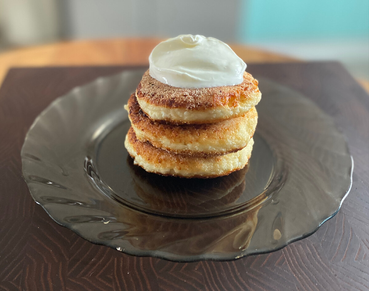 Попробуйте приготовить сырники по этому рецепту- они получаются нежными и вкусными. Для этого нам понадобится: творог 9% жирности 500 г сметана 2 ст.л манка 3 ст.л мука 4 ст.л щепотка соли яйца 2 шт сахар по вкусу( у меня примерно 1/3 стакана) Если у вас крупнозернистый творог, протрите его через сито или измельчите толкушкой для пюре. Добавьте яйца, сахар, соль, сметану, манку и муку. Все хорошенько перемешайте. У вас должно получиться густое тесто. Поставьте на средний нагрев сковородку с маслом и приступайте к формовке сырников. Для этого отделяйте от теста по небольшому кусочку и скатывайте в шарик. Затем приплюсните и обваляйте в муке или манке( с манкой получается хрустящая корочка). Положите в сковороду и обжаривайте до золотистой корочки. Переверните на другую сторону. Готовые сырники выложите на бумажные полотенца, чтобы впиталось лишнее масло. Подавайте со сметаной/сгущенкой/вареньем/медом/вареньем….. Приятного аппетита! #сырники #завтрак #сырники рецепт #творог