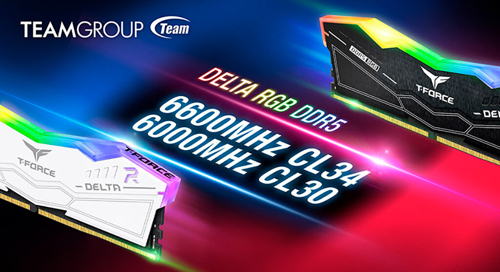 Первые модули памяти DDR5 не слишком отличались от спецификаций, установленных организацией JEDEC. Так лишь, в лучшем случае плюс немножко частоты, или небольшой минус по таймингам. Сейчас производители памяти наладили выпуск чипов DDR5 условно второго поколения, которое уже способно показать внятный прирост относительно DDR4. Сегодня компания Team анонсировала появление в продаже новых модулей T-Force Delta RGB DDR5 с продвинутыми характеристиками. Team предложит 32-гигабайтные (2х 16 ГБ) «киты» с режимами работы DDR5-6600 и пониженными до CL34 таймингами, а также DDR5-6000 с ещё более низкими задержками вида CL30. Напомню, стандартом для DDR5 является частота 4800 МГц при таймингах CL38 – неплохого развития достигли чипмейкеры всего за 8 месяцев. В плане внешнего вида Team T-Force Delta RGB DDR5 кардинально ничем не отличается от любой другой «геймерской» памяти DDR5. Есть радиаторы, есть подсветка, и конечно же схема питания прямиком на текстолите модуля. О дате начала продаж и цен